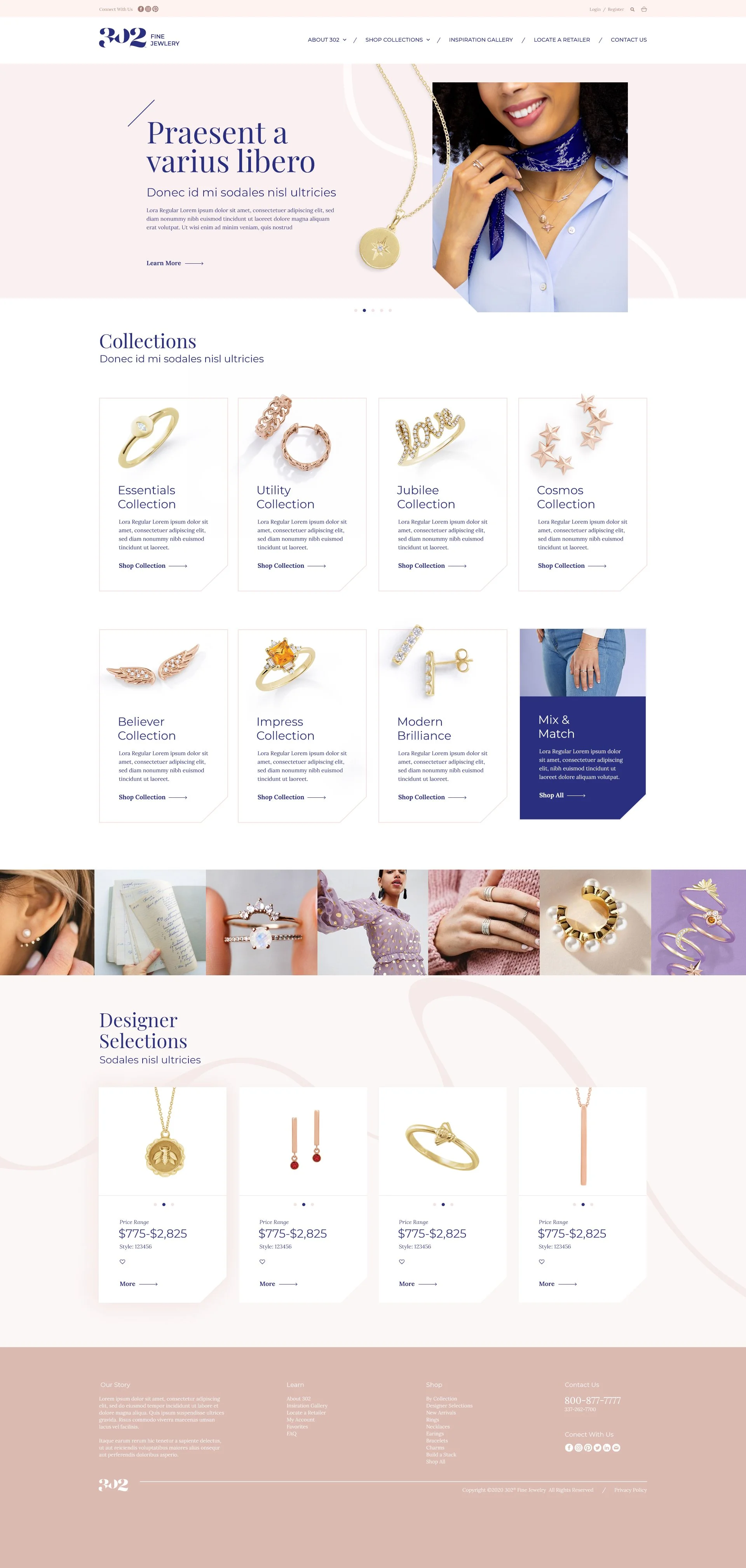 302 Fine Jewelry was a brand concept developed within Stuller to create a more expressive, story-driven fine jewelry line, designed by women, for women. I played a key role in shaping the brand from its earliest stages, leading logo and identity development, collaborating with designers to expand the system, and working cross-functionally to bring the brand to life across digital, print, and video.